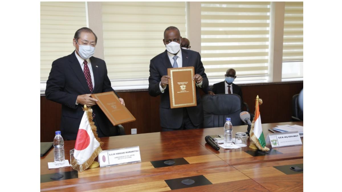 Abidjan, le 10 juillet 2020 – Dans le cadre de la lutte contre la COVID-19, le ministre ivoirien des Affaires étrangères, Ally Coulibaly, et l’ambassadeur du Japon en Côte d’Ivoire, Hideaki Kuramitsu, ont signé un échange de notes relatif à un don d’une valeur de 2,2 milliards de FCFA pour le renforcement des capacités médicales de cinq hôpitaux dans le Grand Abidjan. Notamment, les Centres hospitaliers universitaires (CHU) de Cocody, de Yopougon, d’Angré et de Treichville, ainsi que l’hôpital général d’Anyama.