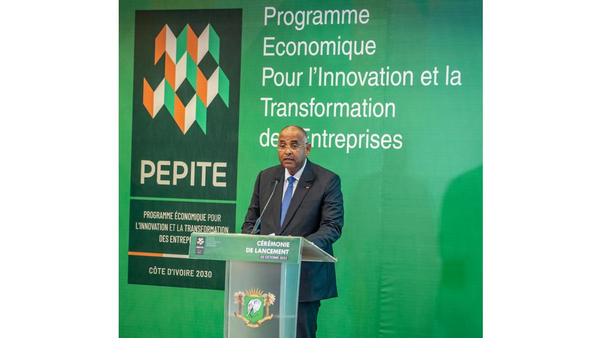 Abidjan, le 05 octobre 2022- Considéré comme l’un des programmes clés de la Vision 2030 du Président de la République, Alassane Ouattara, pour le renforcement des chaînes de valeur domestiques, le Programme économique Pour l’Innovation et la Transformation des Entreprises (PEPITE) a été officiellement lancé, le mardi 05 octobre 2022, à Abidjan-Plateau, par le Premier Ministre Patrick Achi.