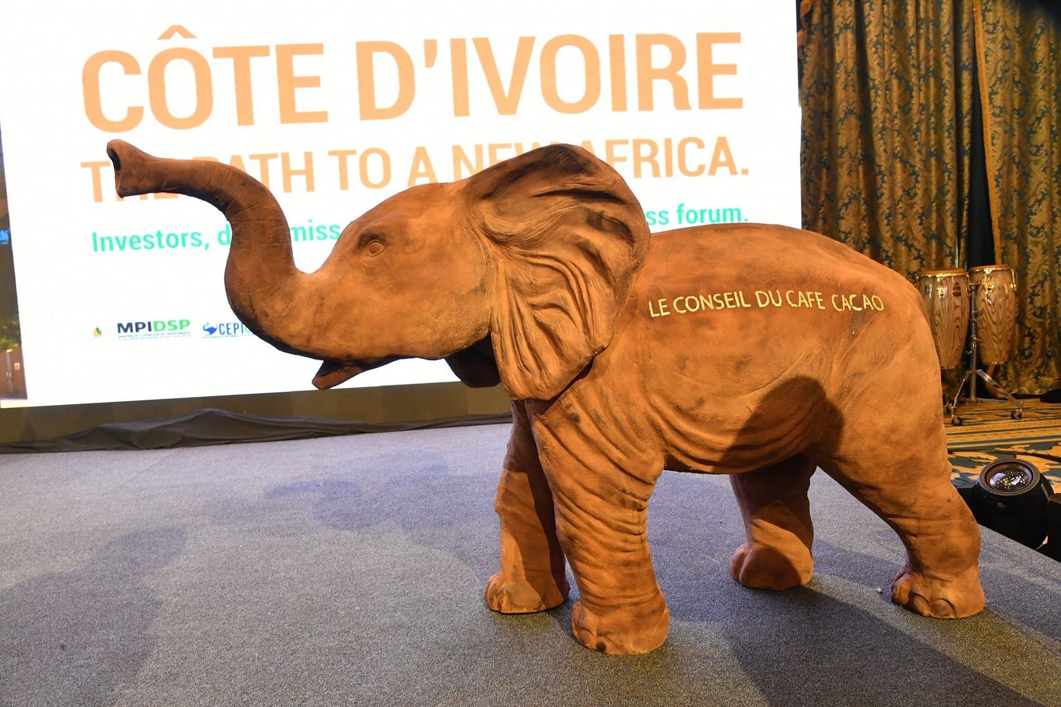 Abidjan, le 29 novembre 2021 - le conseil café cacao a présenté, le 25 novembre 2021 à Dubaï, un éléphant composé à 100% de cacao de Côte d’Ivoire. C’était à l’ouverture du forum économique EXPO Dubaï consacré à la Côte d’Ivoire.