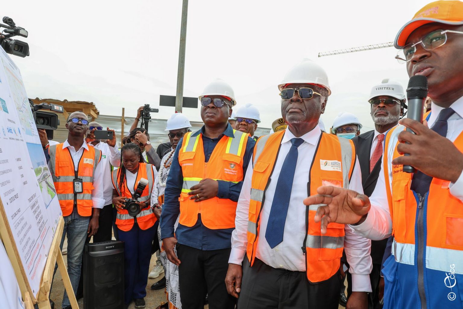 Abidjan, le 5 novembre 2024 – Le Premier Ministre, Robert Beugré Mambé, a effectué, ce mardi 5 novembre 2024, en compagnie du ministre de l’Équipement et de l’Entretien routier, Amédé Koffi Kouakou, la visite de six (6) chantiers d’infrastructures routières à Abidjan. Il s’agit notamment des travaux d’aménagement du carrefour Akwaba à Port-Bouët, des travaux de construction de l’échangeur du grand carrefour de Koumassi, de ceux de quatre (4) échangeurs sur le boulevard Germain Coffi Gadeau (ex-boulevard François Mitterrand) aux carrefours de l’École de Police, de la Riviera 3, de la Palmeraie, et de Faya dans la commune de Cocody.