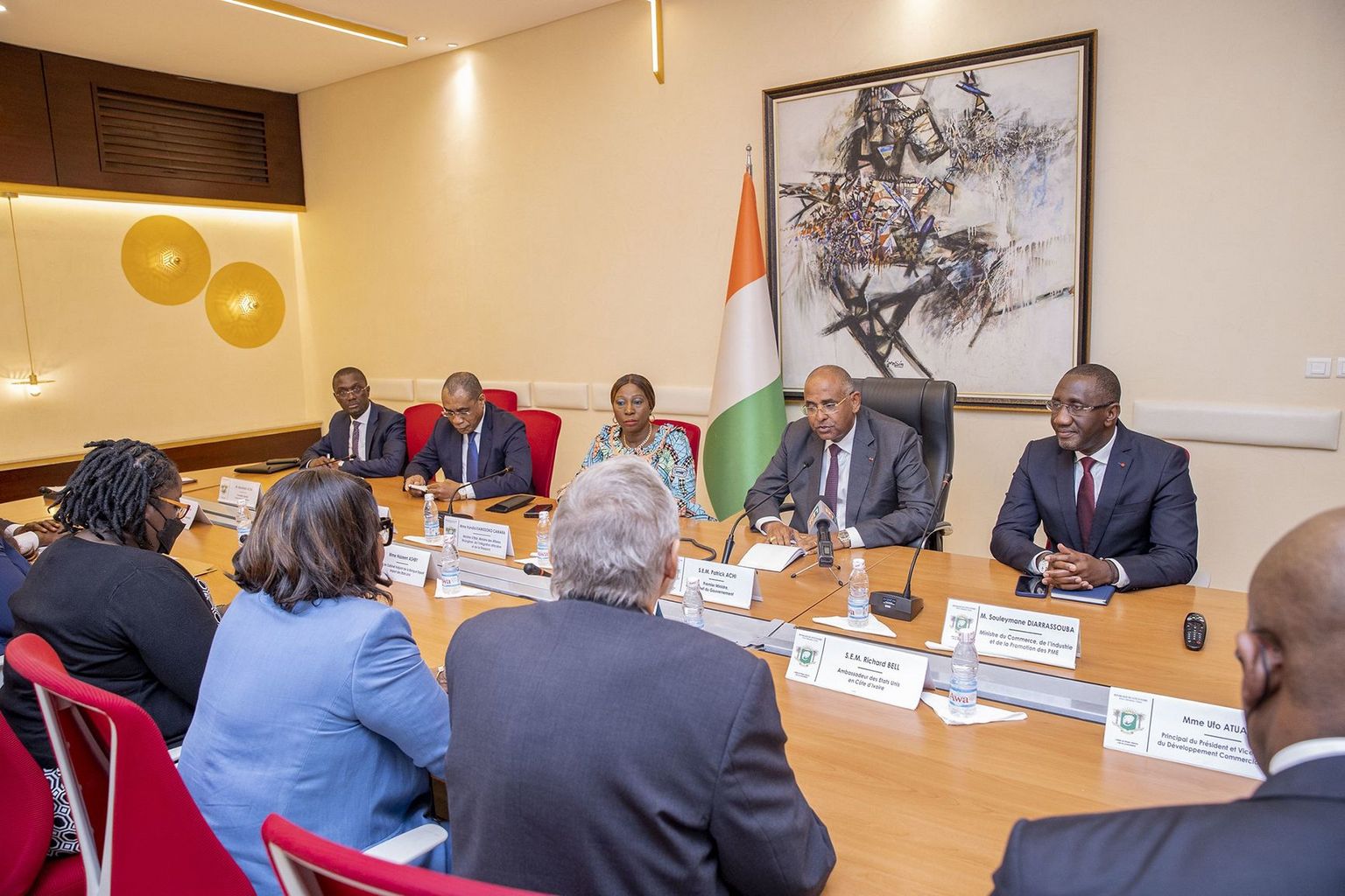 La ministre d’État, ministre des Affaires étrangères et de la Diaspora, Kandia Camara, le ministre du Commerce, de l’Industrie et de la Promotion des PME, Souleymane Diarrassouba et l’ambassadeur américain en Côte d’Ivoire, Richard Bell, étaient présents à cette cérémonie.