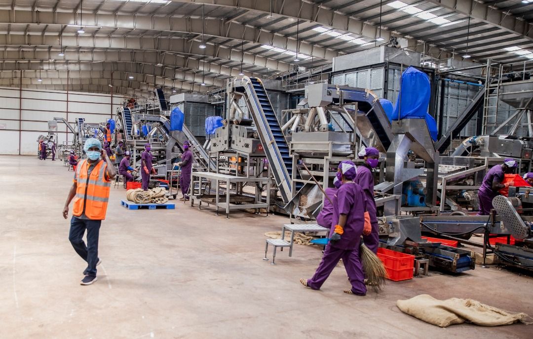 Abidjan, le 13 janvier 2023 - Mise en service par le Premier Ministre Patrick Achi, le 8 juillet 2022, l’unité de transformation de noix de cajou de Toumodi, dans la région du Bélier est bâtie sur une superficie de 12hectares.